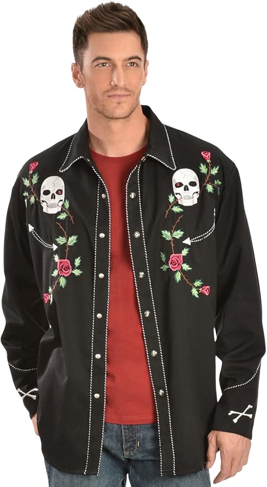 Scully Men's Skull \u0026 Roses Embroidered