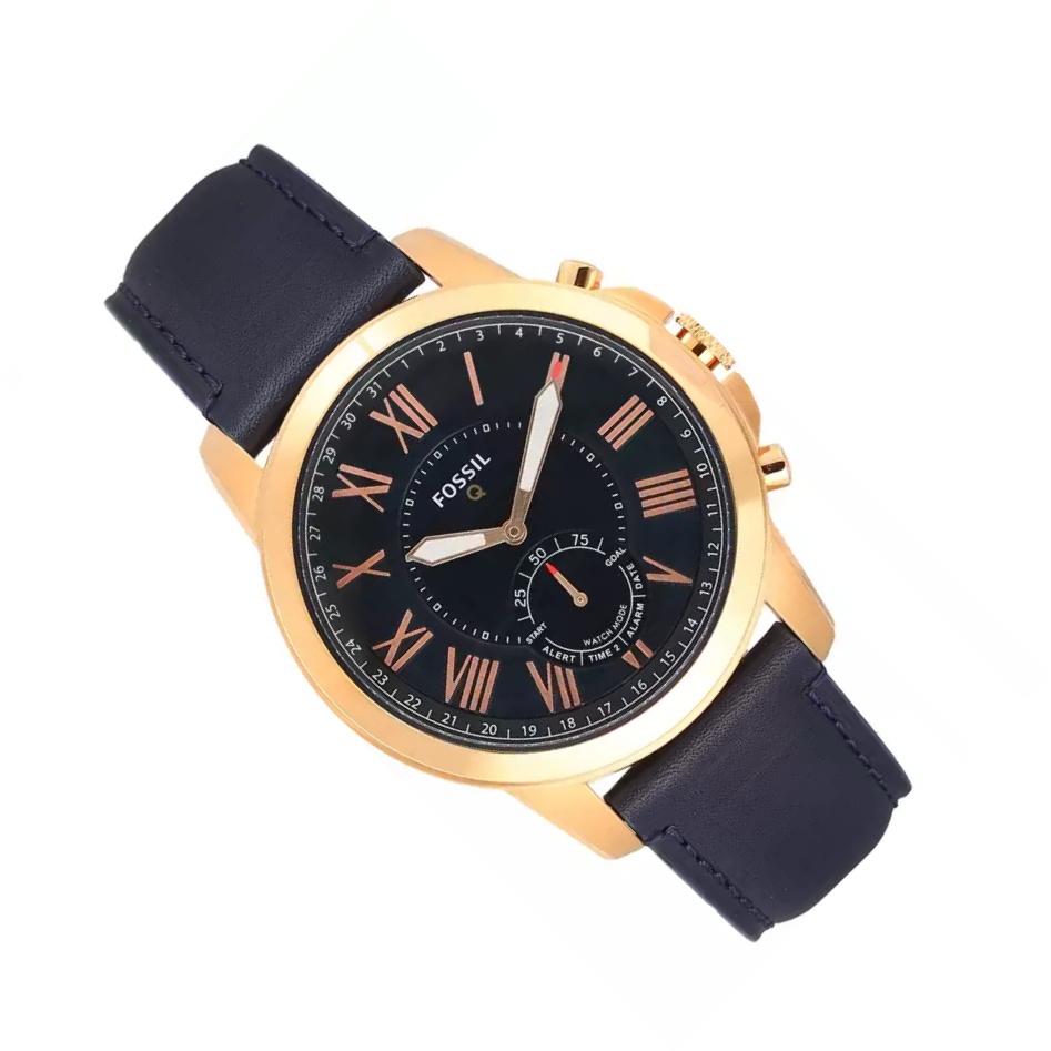 FOSSIL FTW1155 Men's Q Grant Hybrid Smartwatch Leather Strap Navy Blue *Original | Shopee Malaysia