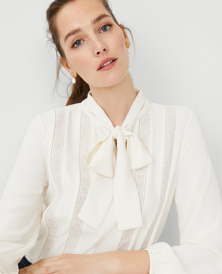 Mixed Media Lace Tie Neck Blouse | Ann