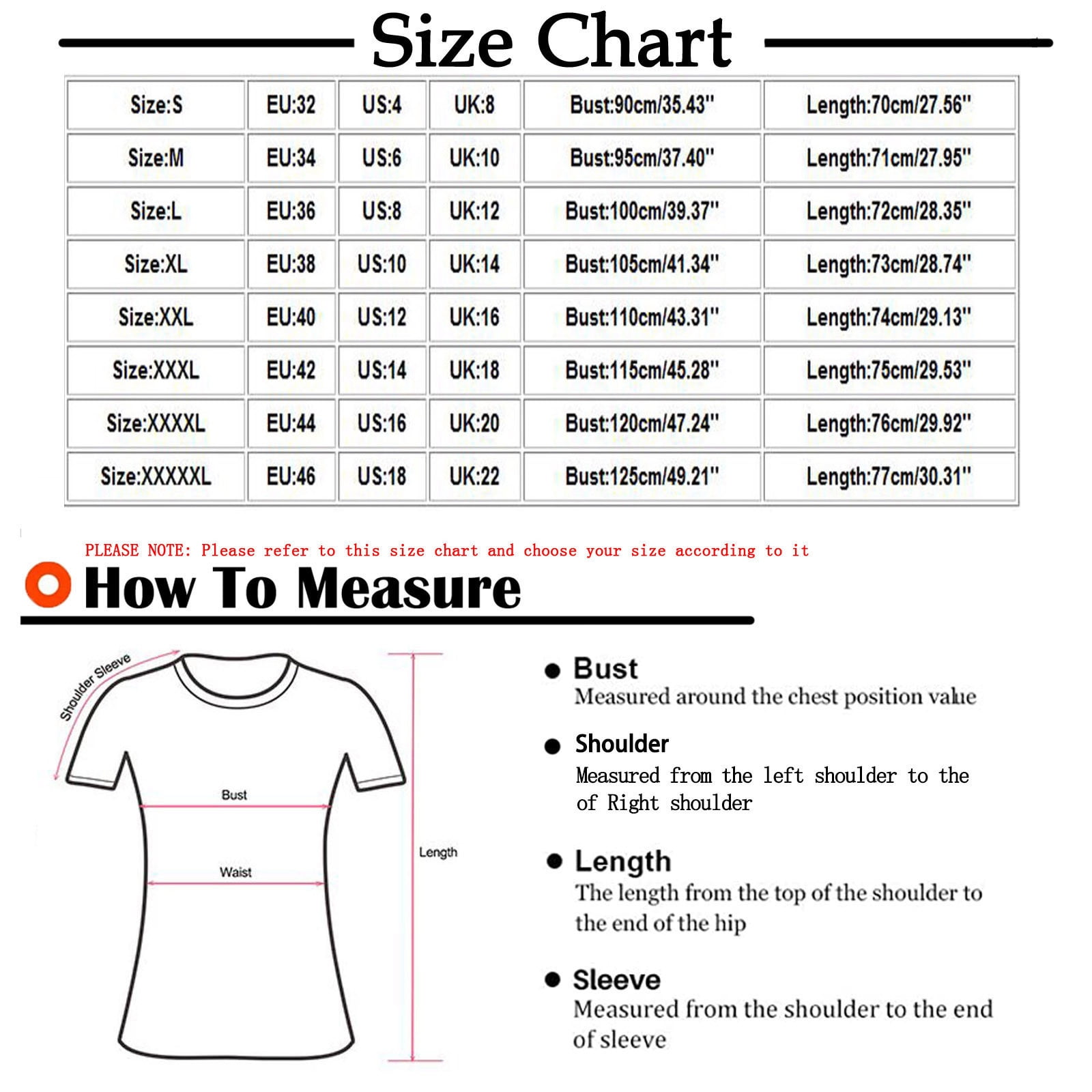 KUKUXUMUSU Women T-Shirt Size Chart