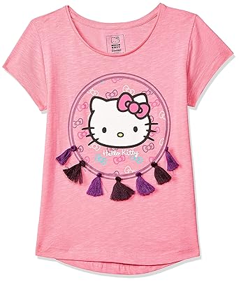 KIDSVILLE Hello Kitty Print Round-Neck T-shirt For Girls (Pink, 7-8Y)