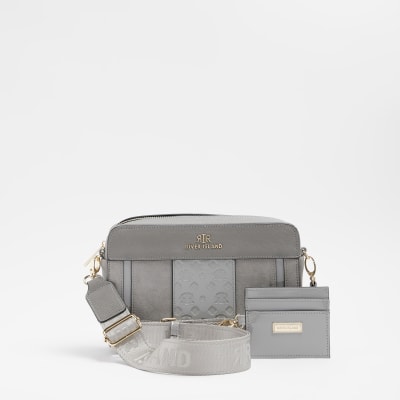 Grey suedette cross body bag | River Island