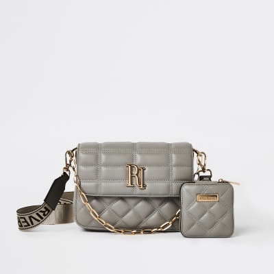 Grey quilted cross body bag | River Island
