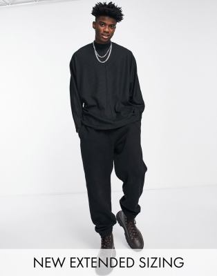 ASOS Design Long Sleeve Oversized Batwing T-Shirt in Heavy Rib in Black