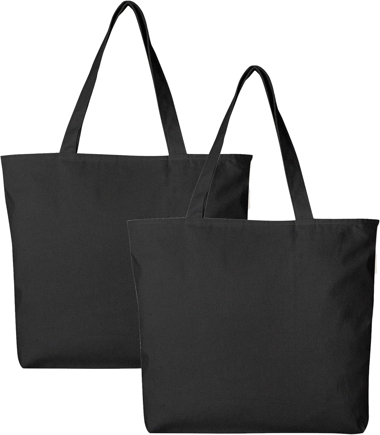 Black Canvas Tote Bag with Zipper, Natural 100% Cotton Black Blank Medium Canvas Adult Zipper Lined with Inside Pockets
